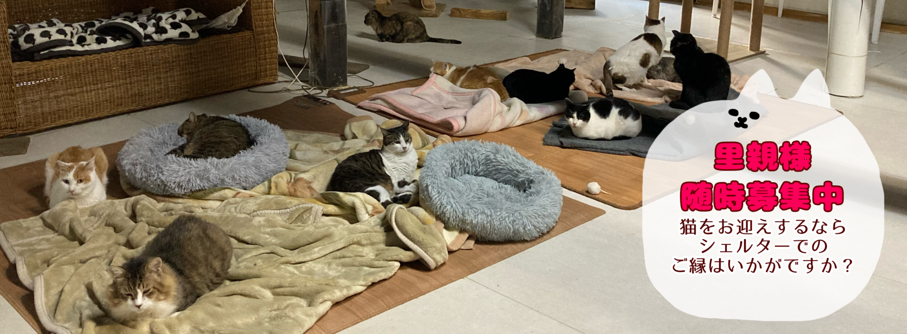 春夏にかけて増えてしまう子猫達の里親様を随時募集しています。ブログ、Instagram、Facebookや外部サイトに掲載されている当団体で保護した猫達のほか、ミルクボランティアから引き受けた子猫達が当団体から里親様にご縁をいただき巣立っています。年齢制限はなく、単身者へも譲渡しています。